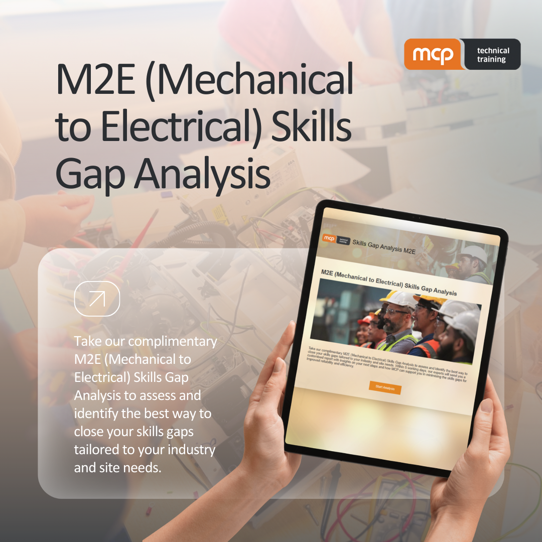 Take our complimentary M2E (Mechanical to Electrical) Skills Gap Analysis to assess and identify the best way to close your skills gaps tailored to your industry and site needs.